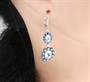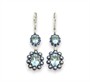 Náušnice z bílého zlata ryzosti 585/1000 se safíry, topazy a diamanty briliantového brusu o celkové hmotnosti 0,16 ct. Celková hmotnost obou náušnic je 4,55 g. Délka celé náušnice je 4,3 cm.