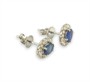 Náušnice z bílého zlata ryzosti 585/1000 se safíry a diamanty briliantového brusu o celkové hmotnosti 0,26 ct. Celková hmotnost obou náušnic je 1,54 g. Rozměry 6 x 8 mm.