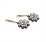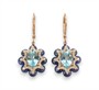 Náušnice z růžového zlata ryzosti 585/1000 se safíry, topazy a diamanty briliantového brusu o celkové hmotnosti 0,44 ct . Celková hmotnost obou náušnic je 5,48 g. Rozměry ověsné části 1,7 x 1,5 cm.
