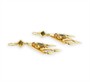 Visací biedermeier náušnice ze žlutého zlata ryzosti 750/1000 zdobené smalty a ověsy. Rozměry 6 x 1,5 cm. Celková hmotnost 8,93 g. Osvědčení Puncovního úřadu.