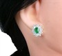Náušnice z bílého zlata ryzosti 585/1000 jsou osazeny přírodními smaragdy o celkové hmotnosti 1,46 ct a diamanty briliantového brusu o celkové hmotnosti 2,10 ct. Celková hmotnost obou náušnic je 4,53 g. Rozměry 1,5 x 1,3 cm.
