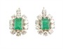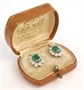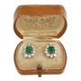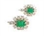 Prvorepublikové náušnice s přírodními smaragdy a zářivými brilianty. Bílé zlato ryzosti 585/1000. Smaragdy mají rozměr mají rozměr cca 7 x 5 mm, kolem každého z nich je zasazeno celkem 10 krásných diamantů starého briliantového brusu hmotnost 0,10 ct, v blízkosti zapínání pak po jednom briliantu hmotnosti 0,05 ct. Celková hmotnost briliantů je tedy 2,10 ct! (čistota SI2 a bílá barva G-H). Rozměr náušnice cca 1,6 x 1,2 cm. Celková hmotnost náušnic 5,75 g. K dispozici certifikát s potvrzením gemologa a původní etue. Reprezentativní luxusní šperk z první poloviny 20. století.