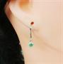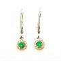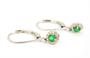 Náušnice z bílého zlata ryzosti 585/1000 zdobené diamanty o celkové hmotnosti 0,12 ct a smaragdy o hmotnosti 0,21 ct. Celková hmotnost obou náušnic je 1,14 g. Průměr ozdobné části 0,5 cm.