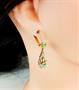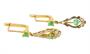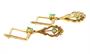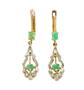 Půvabné visací náušnice ze zlata ryzosti 580/1000 zdobené smaragdy broušenými do bagetového brusu a diamanty o celkové hmotnosti 0,20 ct. Rozměry 3,5 x 0,9 cm. Celková hmotnost 6,06 g.