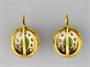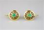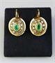 zlaté náušnice se smaragdy a diamantovými routami, Au btto 7,25 g/750/1000, západní Evropa, kolem r. 1970, atest Puncovního úřadu; rozměr 2,2 x 1,5 cm