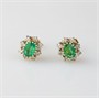 zlaté drobnější náušnice s přírodními smaragdy a diamanty briliantového brusu o celkové hmotnosti cca 0,16 ct, Au btto 2,73 g/585/1000, západní Evropa, kolem r. 1995; atest Puncovního úřadu; rozměry 1,05 x 0,9 cm