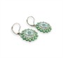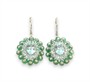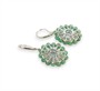 Náušnice z bílého zlata ryzosti 585/1000 se smaragdy, topazy a diamanty briliantového brusu o celkové hmotnosti 0,16 ct. Celková hmotnost obou náušnic je 6,33 g. Rozměry ověsné části 1,8 x 2 cm.