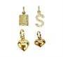 Čtyři přívěsky ze žlutého zlata ryzosti 585/1000 o celkové hmotnosti 1,63 g. Vhodné pro zavěšení na náramek typu žebrák.