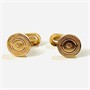 Decentní knoflíčky do náprsenky s kulatou hlavicí zdobené jemným kružnicovým gilošováním a rytím s centrálním motivem osmihroté hvězdy/květu. Lze nosit i jako drobné manžetové knoflíčky do francouzské manžety. Kvalitní západoevropská zlatnická práce z poslední pětiny 19. století.