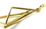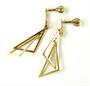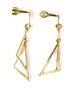 Zlaté náušnice ve tvaru dvou zajímavě spojených trojúhelníků různé barvy zlata, zlato ryzosti 585/1000, hmotnost 4,31 g, délka 4,8 cm.