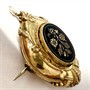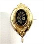 Honosná, elegantní zlatostříbrná brož, jejíž přední část zdobí oválný černý smalt s florálním motivem a kinetický ověs s bílou říční perlou. Tato část byla zhotovena ze zlata ryzosti 550/1000, o váze 2,85 g. Zadní část stříbro ryzosti 670/1000. Celková váha 6,75 g. Osvědčení Puncovního úřadu. Rozměry cca 4 x 2,5 cm. Úměrně stáří je šperk ve velmi dobrém stavu, cenově zajímavý kus vzhledem k hodnotě materiálu.