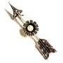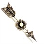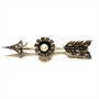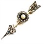 Velmi stará, elegantní brož - šíp zdobený květem. Šperk byl zhotoven ze zlata ryzosti 333/1000, kameny zasazeny do téměř ryzího stříbra 970/1000. Brož zdobí centrální, sněhobílá perla a 23 diamantových rout. Celková váha 5,96 g. Pojistka zapínání. Délka 5,5 cm. Jedinečný šperk z konce 19.století v perfektním stavu.