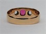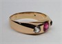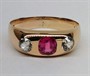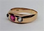 179943Zlatý alianční vídeňský prsten s rubínem a leukosafíry