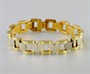 art deco náramek z bílého a žlutého zlata v kombinaci oblých a trojúhelníkových článků, Au 16,60 g/585/1000, Československo, kolem r. 1930, dobová puncovní značka (lvíček); délka 18,5 cm