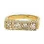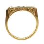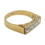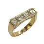 Prsten ze zlata ryzosti 585/1000 zdobený diamanty briliantového brusu o celkové hmotnosti 0,8 ct. Po stranách jemný ornamentální dekor. Velikost 62. Celková hmotnost 6,64 g.