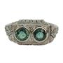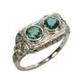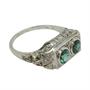 Art deco prsten z bílého zlata ryzosti 585/1000 zdobený dvěmi smaragdy o celkové hmotnosti 1 ct a drobnými diamanty. Velikost prstenu 56. Celková hmotnost 3,90 g. Prvorepublikový punc lvíček.