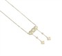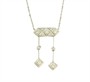 Kolier ve stylu art deco je zhotoven z bílého zlata ryzosti 585/1000 a osazený diamanty briliantového brusu celkové hmotnosti cca 0,40 ct. Celková hmotnost šperku je 4,80 g. Délka řetízku je 46 cm a délka ověsu 3,1 cm.