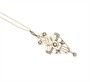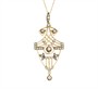 Secesní náhrdelník je zhotoven ze žlutého zlata ryzosti 585/1000 je zdoben diamanty briliantového brusu celkové hmotnosti cca 0,90 ct. Celková hmotnost náhrdelníku je 8,36 g. Délka řetízku je 46 cm a délka závěsu 6 cm.