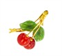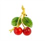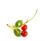 Brož ze zlata ryzosti 585/1000, kuličky třešní z karneolu, lístky z nefritu. Rozměry 4,9 x 4 cm, celková hmotnost 16,17 g.