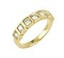Zářivý, decentní prsten osazený přírodními diamanty kulatého briliantového brusu o celkové váze 0,77 ct (0,11 ct - 7 ks), kvalita velmi dobrá, nezvykle usazeno ve čtvercových lůžkách. Originální geometrizující design, kvalitní západoevropská či severoamerická zlatnická práce z první pětiny 21. století.