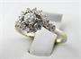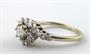 Bílé 18 karátové zlato, přírodní diamanty. Ryzost Au 750 / 1000, celková hmotnost 2,70 gramů. Centrální přírodní diamant moderního briliantového brusu o váze 0,25 ct, barva G, čistota VS1. 18 přírodních diamantů výbrusu Achtkant o celkové váze 0,40 ct, barva G, čistota Si. Dámský prsten z bílého 18karátového zlata ve tvaru kytičky s centrálním větším přírodním diamantem moderního briliantového brusu. Okraj hlavy prstenu a vrchol obroučky osázený 18 přírodními diamanty brusu Achtkant. Značeno : ryzost 750, československý punc hlava kohouta s číslem 3. Evropa druhá polovina minulého století. Velikost prstenu 51.