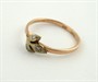Čtrnáctikarátové zlato, přírodní diamanty. Ryzost Au 583/1000, celková hmotnost 1,70 g. Tři přírodní diamanty výbrusu achtkant o hmotnosti 0,05 ct. Přiloženo osvědčení Puncovního úřadu České republiky. Jemný zlatý prsten s hladkou obroučkou. Dekorován na hlavě prstenu motivem listů osázených přírodními diamanty. Značeno: ryzost, punc, značka výrobce. Sovětský svaz 1958 - 1992. Velikost prstenu 59.
