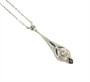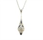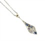 Kolier z bílého zlata ryzosti 585/1000 (punc labuť) se safíry a diamanty celkové hmotnosti cca 0,20 ct. Celková hmotnost šperku je 4,13 g. Délka řetízku je 46 cm a délka závěsu 3,6 cm. Šperk je zhotoven ve stylu art deco.