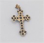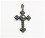 Zlatostříbrný kříž s černými diamanty a přírodní perlou, 27 černých diamantů, 1 přírodní perla. Celková hmotnost Au + Ag 3,55 g/750+925/1000, osvědčení Puncovního úřadu. Kvalitní šperkařská práce, západní Evropa, druhá čtvrtina 20. století, rozměry 3,9 x 2,1 cm.