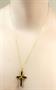 Zlatý křížek s černým smaltem a říční perličkou, zlato ryzost 585/1000, punc liška, hmotnost 2,01 g. Rozměry křížku 3,5 x 2,2 cm. Délka řetízku 48 cm. Starožitný šperk z konce 19. století.
