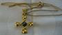 Zlatý křížek krásného provedení, uprostřed lapis lazuli, vel.2x2cn, řetízek dlouhý 42cm. Vše zlato 585/1000 váha 3,9g. Původ Španělsko.