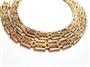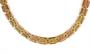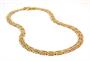 Zdobný, článkový, filigránový náhrdelník vyrobený v unikátní kombinaci růžového a žlutého zlata. Vnější plné obruby jednotlivých článků jsou z růžového zlata a u vnitřních filigránových ozdob se pravidelně střídá barva žlutého a růžového zlata. Náhrdelník je zhotoven ze zlata ryzosti 585/1000. Délka je 44 cm, šířka 8 mm. Celková hmotnost 23,70 g. Náhrdelník je opatřen pojistným řetízkem.