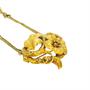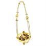 Náhrdelník z období biedermeieru ze zlata ryzosti 580/1000. Hmotnost náhrdelníku je 17,40 g. Délka řetízku je asi 36 cm. Lze připnout také jako brož. Rozměry závěsu/brože jsou 4,6 x 4,4 cm. Osvědčení Puncovního úřadu.
