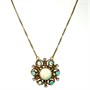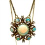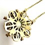 Půvabný zlatý náhrdelník. Šperk vyrobený ze 14ti karátového zlata (585/1000) zdobí centrální, neodnímatelný závěs ve tvaru květu. Ten byl osazen sedmi australskými opály nejvyšší kvality. Kameny se pyšní vysokou opalizací a mají překrásný, sytý modrozelený nádech. Celkový dojem dotváří 6 briliantů. Průměr závěsu cca 2 cm. Délka řetízku 41,5 cm. Váha 7,99 g. Luxusní,zlatý šperk v perfektním stavu.