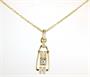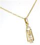 Zlatý náhrdelník s brilianty, zlato ryzost 585/1000, přívěsek je zdoben diamanty o celkové hmotnosti 0,2 ct, hmotnost 4,57 g, délka řetízku 44 cm, rozměry přívěsku 3 x 1 cm.