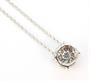 Náhrdelník z bílého zlata ryzosti 585/1000 zdobený 24 diamanty briliantového brusu (celkem 0,30 ct). Délka řetízku 45 cm. Rozměr závěsu 0,8 x 0,8 cm. Celková hmotnost 2,59 g.