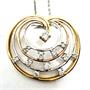 Půvabný, originální náhrdelník kombinaci bílého, žlutého a růžového zlata. Šperk zdobí neodnímatelný závěs z 18ti karátového zlata (750/1000) osazený 11ti brilianty o váze cca 0,32ct. Řetízek zlato ryzosti 14k (585/1000). Délka řetízku 47 cm. Celková váha šperku 5,98 g. Profesionálně vyčištěno zlatníkem, perfektní stav.