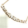 Velmi půvabný náhrdelník z růžové zlata zdobený brilianty. Šperk byl zhotoven ze zlata ryzosti 14 karátů (585/1000), o celkové váze 3,12 g. Frontální část šperku zdobí 14 briliantů bagetového brusu kontrastně proloženými 13ti brilianty brusu briliantového. Délka 41,5 plus 6 cm prodlužovací část. Šperk perfektním stavu.