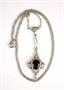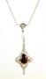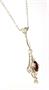 Zlatý náhrdelník s brilianty a granátem, zlato ryzost 585/1000, přívěsek je zdoben diamanty o celkové hmotnosti 0,30 ct a granátem, hmotnost 6,42 g, délka řetízku 46 cm, rozměry přívěsku 5x 1,8 cm.