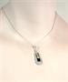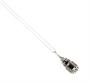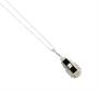 Náhrdelník z bílého zlata ryzosti 585/1000 je zdobený diamanty briliantového brusu o celkové hmotnosti 0,50 ct a jedním onyxem. Celková hmotnost šperku je 4,6 g. Délka řetízku je 43 cm.