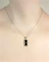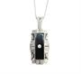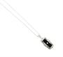 Náhrdelník z bílého zlata o ryzosti 585/1000 osazen onyxem a diamanty briliantového brusu o celkové hmotnosti 0,15 ct. Délka řetízku je 45 cm a přívěsku 2,5 cm. Celková hmotnost je 3,22 g.