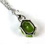 Zlatý náhrdelník s brilianty a peridotem, zlato ryzost 585/1000, přívěsek je zdoben diamanty o celkové hmotnosti 0,01 ct a peridotem o hmotnosti 1,27 ct, hmotnost 3,13 g, délka řetízku 44 cm, rozměry přívěsku 1,5 x 0,7 cm.