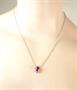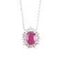 Náhrdelník z bílého zlata ryzosti 585/1000 je zdobený 11 diamanty o celkové hmotnosti 0,40 ct a rubínem o hmotnosti 0,80 ct. Celková hmotnost šperku je 2,60 g. Délka řetízku je 44 cm.