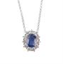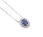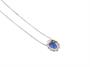 Náhrdelník z bílého zlata ryzosti 585/1000 je zdobený 11 diamanty o celkové hmotnosti 0,40 ct a safírem o hmotnosti 0,80 ct. Celková hmotnost šperku je 2,62 g. Délka řetízku je 44 cm.