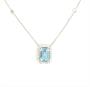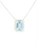 Náhrdelník z bílého zlata ryzosti 750/1000 zdobený diamanty o celkové hmotnosti 0,15 ct. a jedním modrým topazem o hmotnosti 0,90 ct. Délka řetízku 43,5 cm a délka závěsu 0,9 cm. Celková hmotnost 2,41 g.