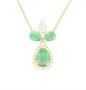 Náhrdelník ze žlutého zlata ryzosti 750/1000 zdobený 28 diamanty o celkové hmotnosti 0,40 ct. a třemi smaragdy o celkové hmotnosti 1,30 ct. Délka řetízku 43 cm a délka závěsu 2 cm. Celková hmotnost 4,06 g.