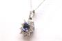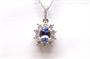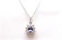 Zlatý náhrdelník s diamanty a tanzanitem. Bílé zlato 375/1000. Přírodní tanzanit 0,95 ct. Přírodní diamanty, kvalita SI1 - SI2, barva H - I, celková váha 0,8 ct. Váha náhrdelníku: 2,79 g. Rozměr přívěsku: 1,3 cm x 1,1 cm. Délka řetízku: 45 cm.