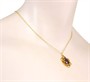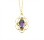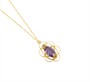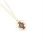 Náhrdelník ze žlutého zlata ryzosti 585/1000 zdobený oválným fialovým kamenem. Délka řetízku 41 cm, rozměry závěsu 2,6 x 1,6 cm. Celková hmotnost 3,62 g.