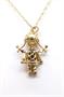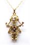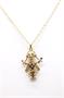 Zlatý náhrdelník s granáty a zirkony. Žluté zlato 375/1000. Přírodní granáty, celková váha 0,06 ct. Kubické zirkony, celková váha 0,04 ct. Váha náhrdelníku: 4,83 g. Délka řetízku: 50 cm. Rozměr ověsu: 2,5 cm x 1,4 cm.