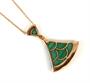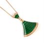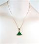 Náhrdelník ze zlata ryzosti 585/1000 zdobený 2 malachity (celkem 1,20 ct) a 24 diamanty briliantového brusu (celkem 0,24 ct). Délka řetízku 44 cm. Rozměry závěsu 3 x 2,3 cm. Celková hmotnost 5,82 g.
