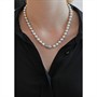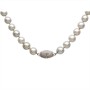 18 karátové bílé zlato 750/1000, celková hmotnost 40,75 g | Mořské perly Akoya se stříbrným nádechem | Přírodní diamanty briliantového brusu o celkové hmotnosti 0,50 ct | Krásný stav | 2.polovina 20.století | Délka 45 cm | Velikost perly cca 0,8-0,9 cm | Kameny zkontrolovány v gemologické laboratoři | Zařizujeme veškerý profesionální zlatnický servis - úpravy velikosti, opravy, rhodiování, čištění, výměnu kamenů, znalecké odhady, certifikace a další služby dle vašich potřeb.